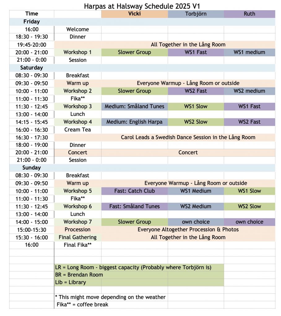 • The groups are split into slower, medium and fast. You get to choose which group you go in. It is fine to swap groups – be aware the tutors may be teaching the same tunes to each group.